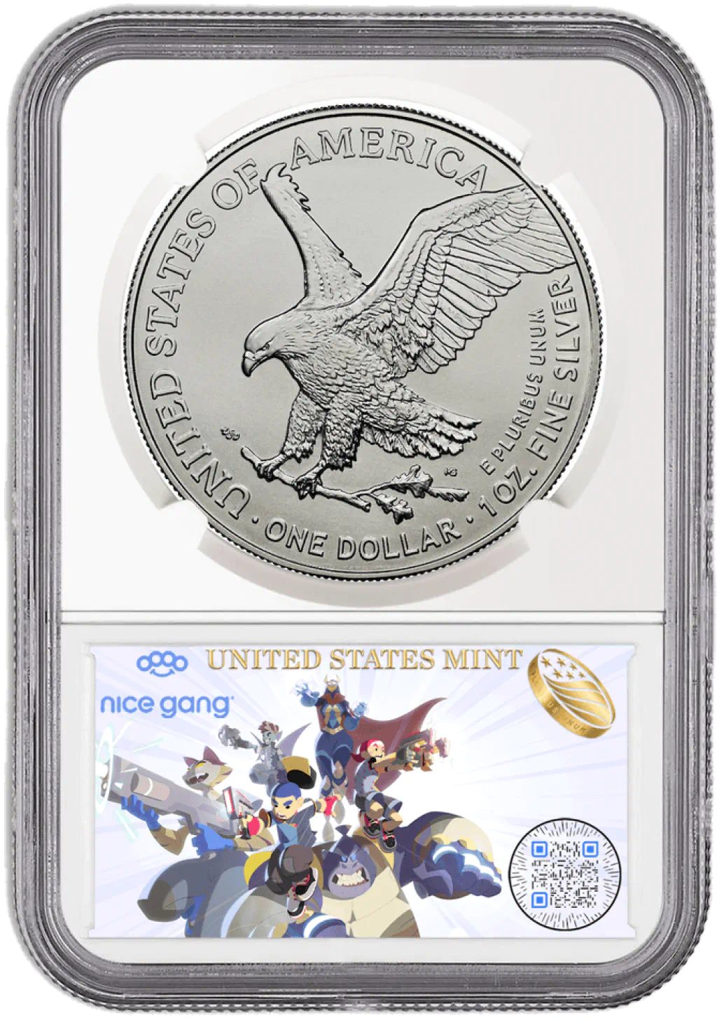 Nice Gang follows DC Comics as the second company to collaborate with the United States Mint to promote special, limited-edition coins. The first product in this collaboration was a bullion American Silver Eagle, issued in the lowest mintage ever and featuring a star privy mark. For more information about this historic partnership, head to the United States Mint website.