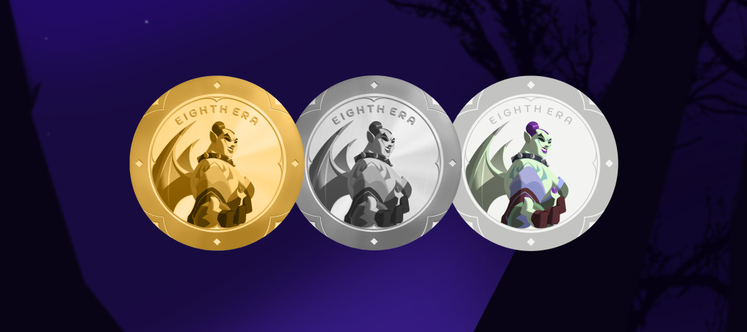 The Vesper hero coin, designed by Vincent Nguyen, is the first coin set in Battle Pass Season Two and the second Pteran coin in the Eighth Era collection. The coin comes in three rarities: colorized (1/350), silvered (1/50), and gold-gilted (1/5).